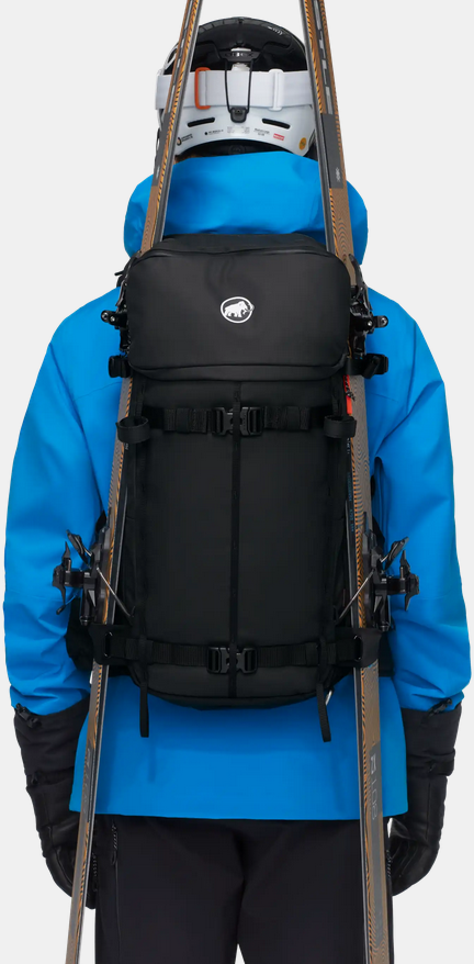 The legendary Nirvana is our true snow sports pack, optimized for freeriding and lift-supported ski touring. Versatile and well-equipped with specialized winter features, the Nirvana 35 is the ideal partner for a wide range of plans. Organize and stow all your gear with easy access to the main compartment through the 270° zippered back panel. A separate avalanche equipment compartment ensures you are always prepared, while a dedicated internal sleeve makes the pack compatible with the Mammut Back Protector. Skis and splitboards can be attached diagonally or A-frame style. An optimized carrying system provides maximum comfort and freedom of movement. The specially selected fabrics, including the extremely robust outer, are PFC-free and made from recycled materials.